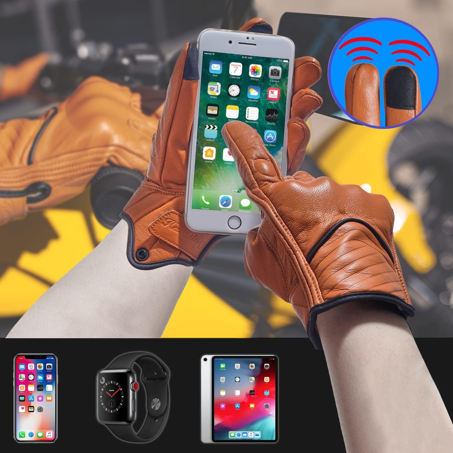 Leather Motorcycle Gloves for Men,Touchscreen Riding Driving Biker Glove with Hard Knuckle Protection,Motorcycle Accessories for Man