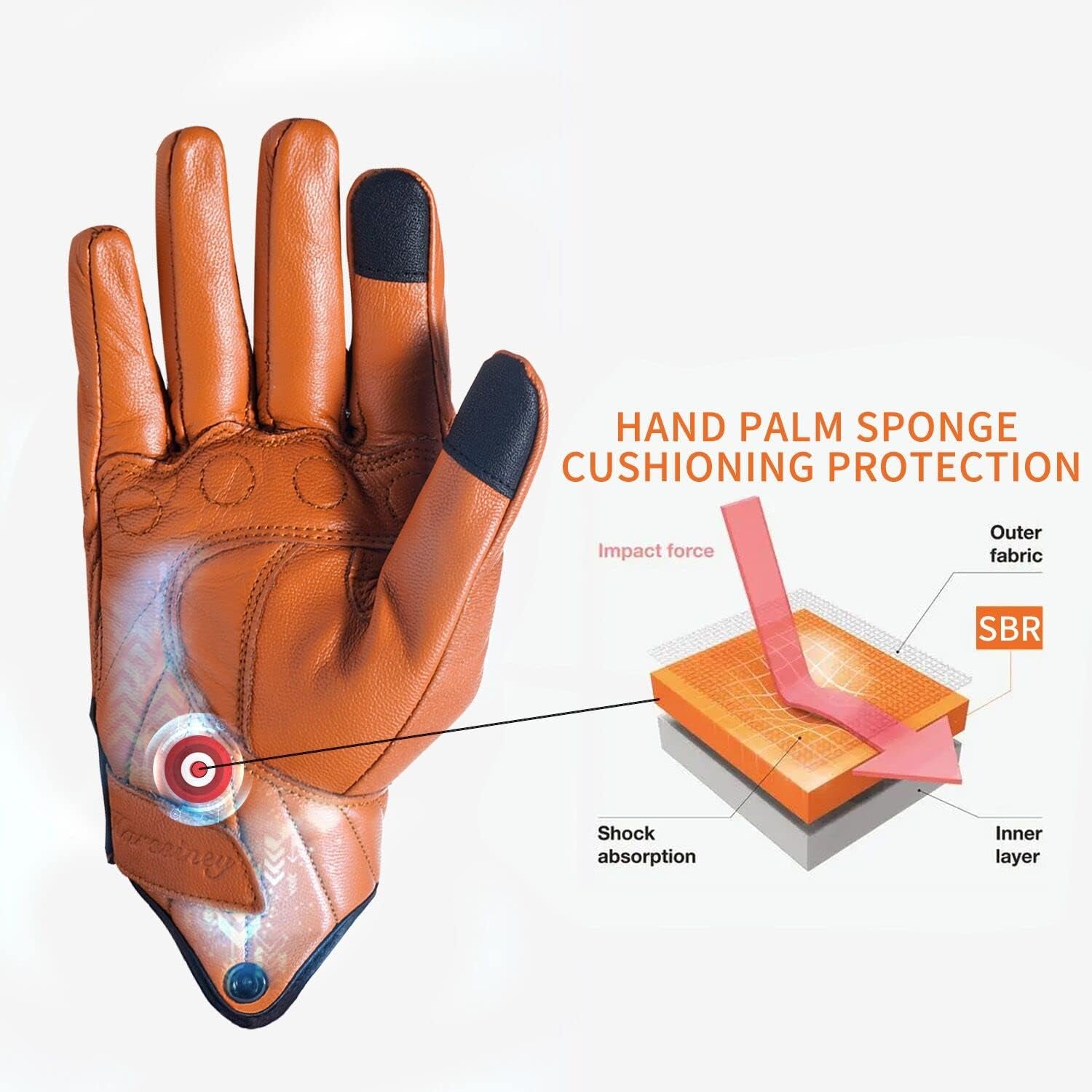 - Durable Mens Motorcycle Gloves and Anti-shock & Anti-slip Pad :The Riding Gloves is Made Of the Premium Goatskin Leather.The Gloves is with the Thickened Pad on the Thumb and the Sides and Anti-slip Pad in the Palm, Protecting your Hands from the Shock and Impact.